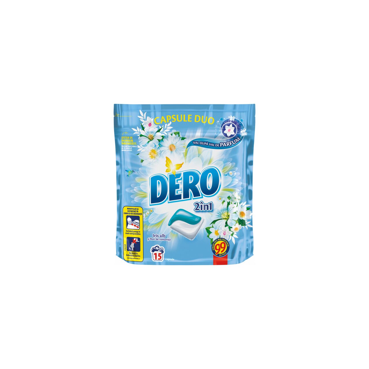 Capsulele DERO sunt de 2 x mai concentrate decat detergentul lichid, lasand hainele curate si frumos parfumate. CAPSULELE DERO beneficiaza de avantajul formatului: sunt usor de folosit fiind pre-dozate si nu lasa urme pe hainele inchise la culoare dupa uscare. Se dizolva si actioneza direct in cuva, oferind rezultate excelente chiar si la 30 de grade Celsius. In acelasi timp, ofera aceeasi prospetime, care dureaza mult, mult timp, spulberand totodata si cele mai frecvente 99 de pete!