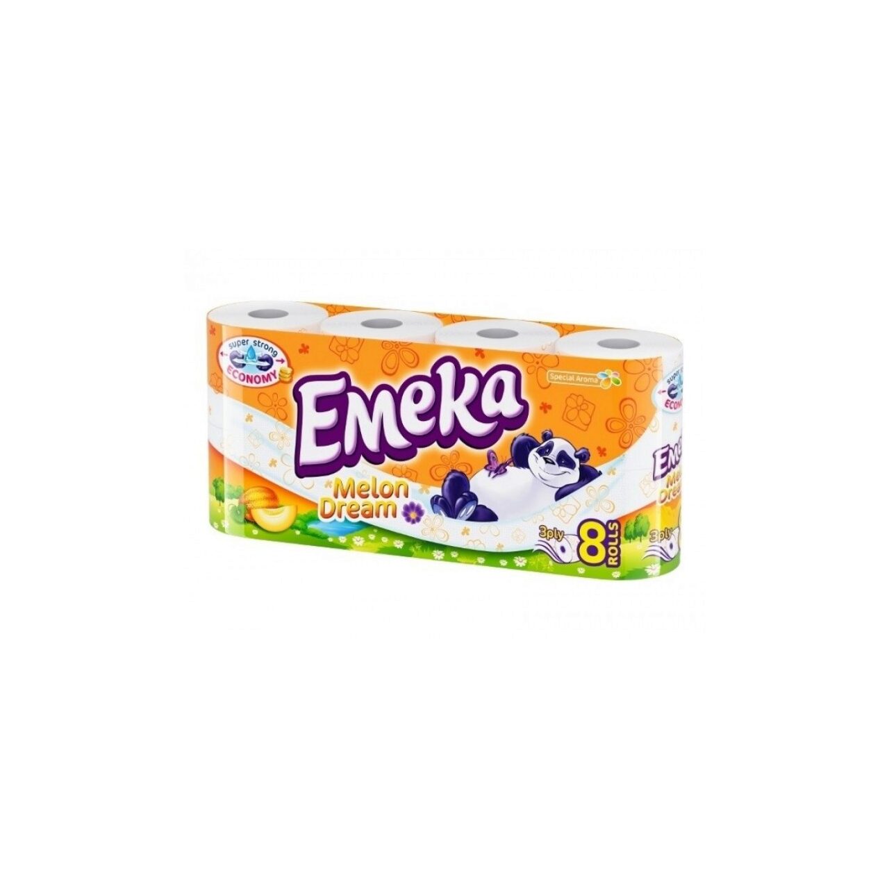 Emeka este o hartie igienica de inalta calitate, cunoscuta pentru delicatetea sa, este fina, economica si rezistenta din 3 straturi. Este din 100% celuloza alba si are un design modern, cu flori in relief.